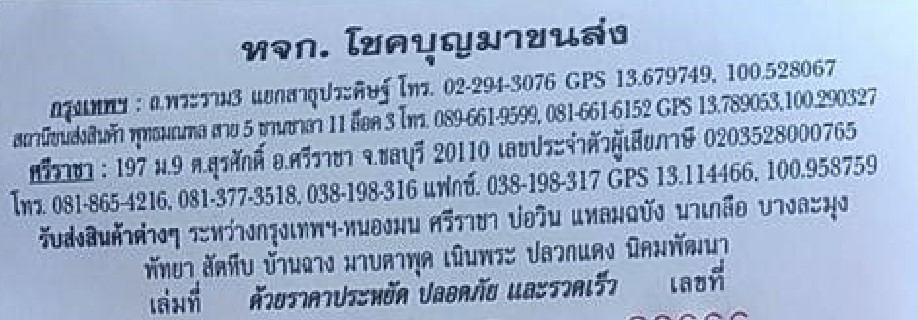 โชคบุญมา ขนส่ง
