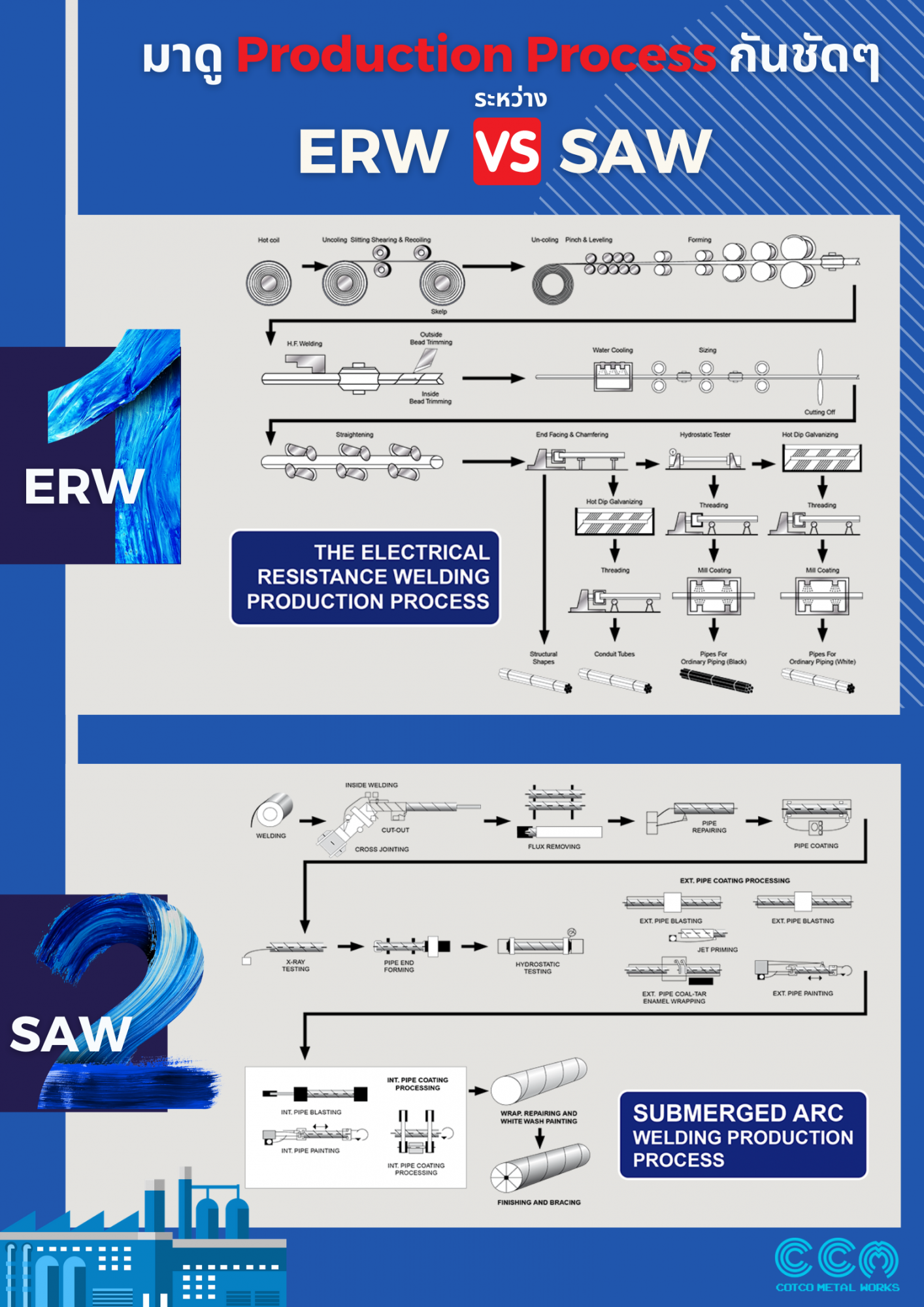 สำหรับแบรนด์ CCM เรานำกระบวนการ Electric Resistance Welding มาใช้งานกับท่อประเภท ท่อเหล็กดำ ท่อเหล็กพรีซิ้งค์ ท่อเฟอร์นิเจอร์ และท่อชุบสังกะสี
