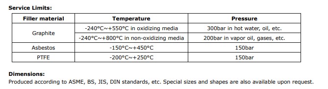 ใช้กับงานที่มีอุณหภูมิสูงถึง 1000°C ชิ้นอยู่กับชนิดของวัสดุที่นำมาทำ และสามารถใช้กับงานที่มีความดันถึง CLASS 2500